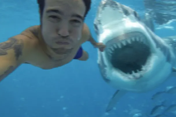 Khi đang hưởng tuần trăng mật trên biển, anh James Crowlett (34 tuổi) muốn có một bức ảnh selfie dưới nước để khoe với bạn bè. Bức ảnh được tải lên Facebook tự động và mọi người cứ ngỡ rằng đó là cá mập giả, tuy nhiên sự thật thì không phải vậy. Crowlett đã bị cắn đứt chân trước khi nhân viên cứu hộ đến, và anh đã chết trên đường đến bệnh viện vì mất quá nhiều máu.