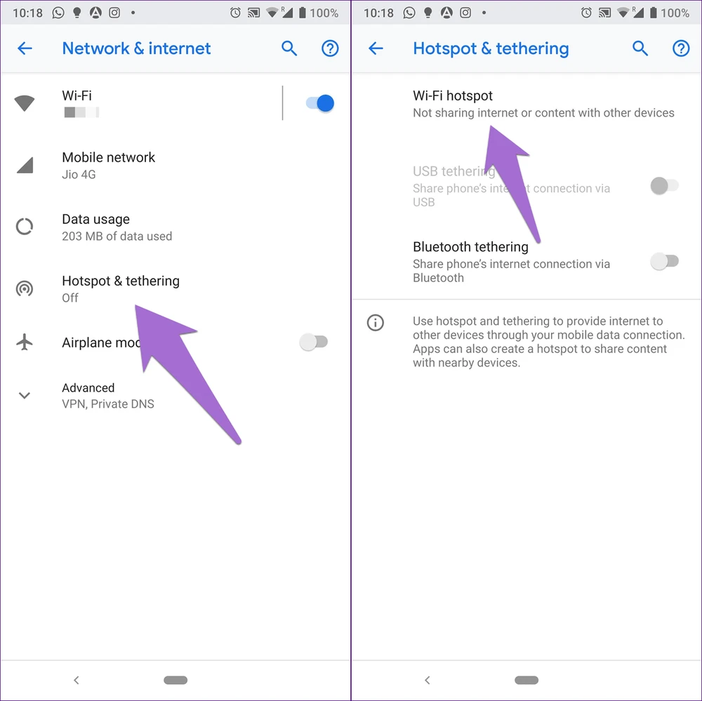 - Bước 1: Trên điện thoại Android, bạn hãy vào Settings > Network & Internet > Hotspot & tethering > Wi-Fi hotspot. Nếu là lần đầu tiên sử dụng, bạn cần phải đặt tên và mật khẩu, sau đó kích hoạt tính năng này.