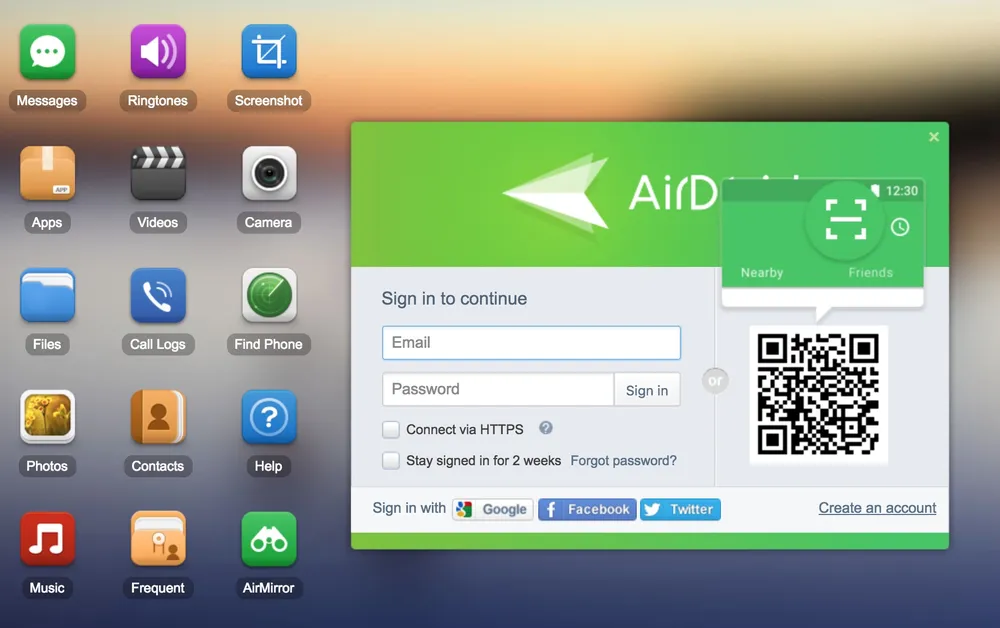Tiếp theo, bạn chỉ cần mở trình duyệt trên máy tính hoặc smartphone và truy cập vào trang web http://web.airdroid.com/, đăng nhập bằng tài khoản tương ứng.