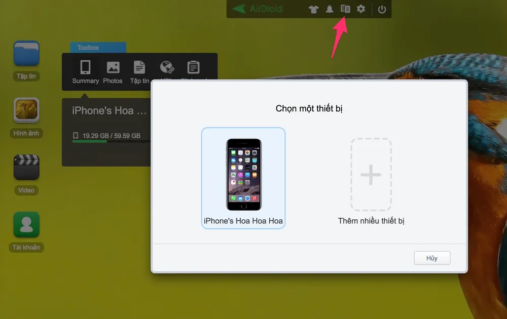 Tất nhiên, bạn vẫn có thể xem hình ảnh, video, tin nhắn trên điện thoại bằng máy tính để có được trải nghiệm tốt hơn. Bên cạnh đó, ứng dụng AirDroid còn cho phép người dùng quản lý cùng lúc thiết bị bằng cách bấm vào biểu tượng điện thoại ở phía trên, sau đó chọn Thêm nhiều thiết bị.