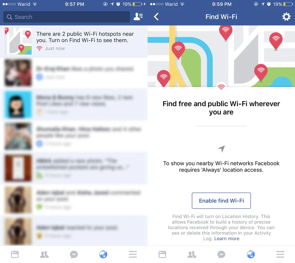 Khi bạn ở gần một điểm truy cập miễn phí, Facebook sẽ tự động hiển thị thông báo. Đổi lại, bạn cần phải cấp quyền cho phép Facebook sử dụng vị trí ngay cả khi bạn không mở ứng dụng. Do đó nếu lo ngại các vấn đề riêng tư, người dùng có thể vô hiệu hóa bằng cách sau.