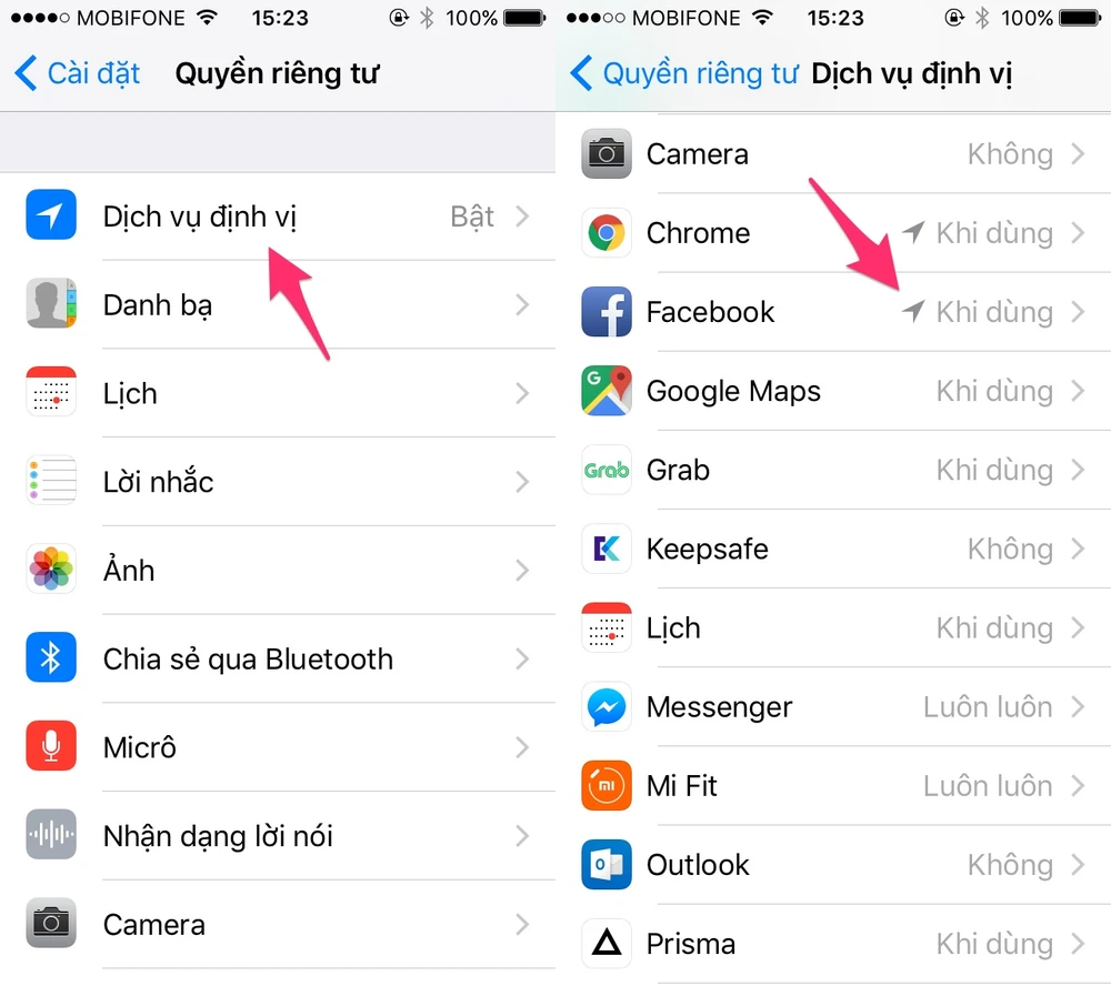 - Bước 3: Ngoài ra, người dùng cũng nên thu hồi quyền sử dụng vị trí của ứng dụng bằng cách vào Settings (cài đặt) > Privacy (quyền riêng tư) > Location (dịch vụ định vị) và vô hiệu hóa ứng dụng Facebook. Lưu ý, đây là các thiết lập trên iOS, không áp dụng cho Android.