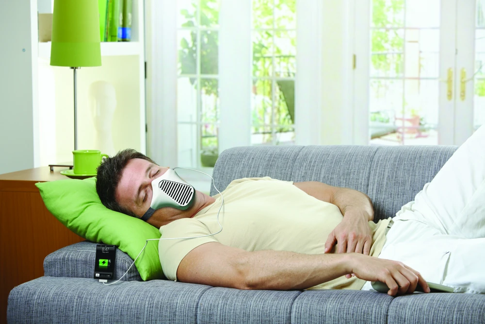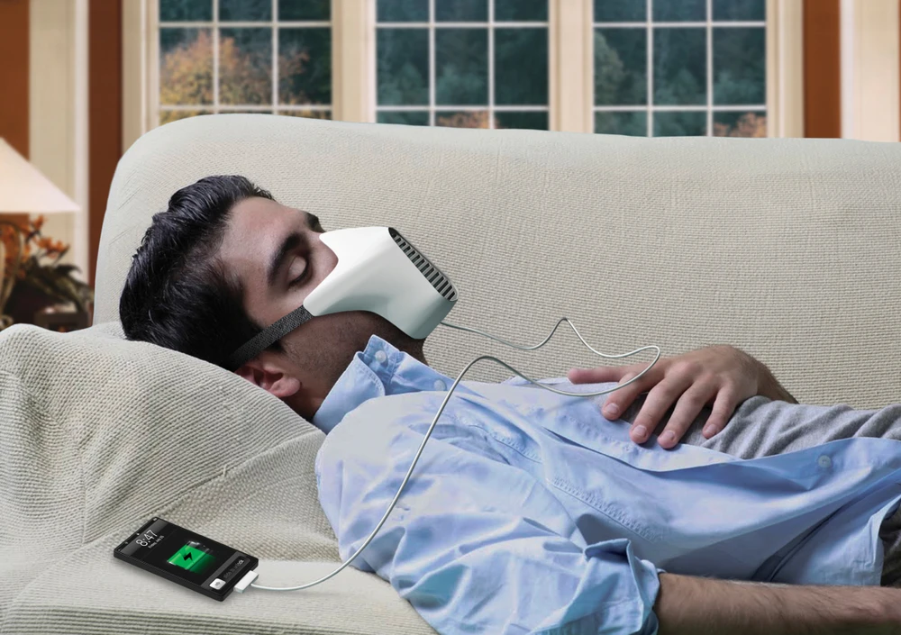 Lammoglia thiết kế một chiếc mặt nạ (giống loại mặt nạ dưỡng khí) gọi là AIRE, sử dụng tua-bin gió nhỏ để chuyển đổi hơi thở của người dùng thành năng lượng điện - ngay cả trong khi ngủ hoặc di chuyển. Về mặt lý thuyết thiết bị này vô cùng có ích cho bạn.