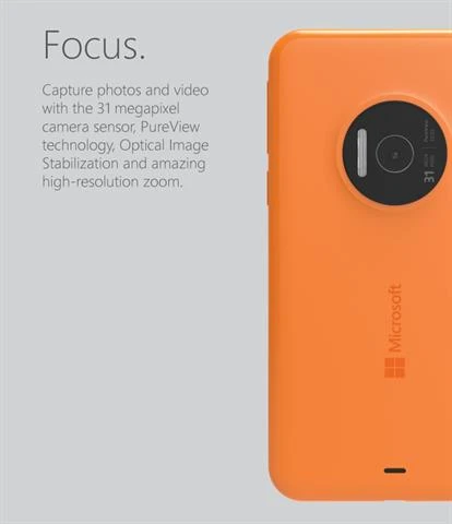 Concept Lumia 935 được trang bị camera chính PureView 31MP cùng với camera phụ 8MP. Thiết kế của máy với viền màn hình nhỏ, mặt sau như làm bằng chất liệu polycarbonate như các dòng Lumia khác.