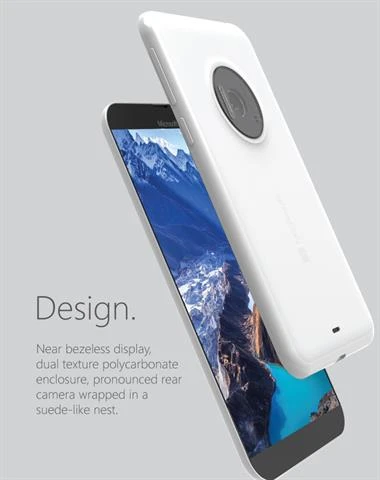 Máy ảnh trong bản concept này cũng được tích hợp ống kính quang học OIS cùng khả năng zoom kỹ thuật số. Camera trước đi kèm với ống kính góc rộng cho khả năng selfie đẹp hơn. Màn hình 5,5-inch độ phân giải lên đến 2K, độ dày của máy chỉ mỏng 6,9 mm. Và tất nhiên, thiết bị chạy Windows 10 - hệ điều hành mới ra mắt.