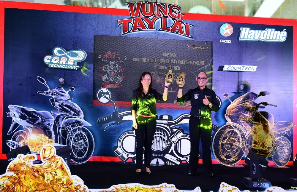 Ngoài ra, Chevron còn ra mắt hai dòng sản phẩm dầu nhờn động cơ xe máy số mới mang tên dầu nhờn tổng hợp toàn phần Caltex Havoline Super 4T Fully Synthetic SAE 5W-40 API SN, JASO MA2. Bao bì mới của bộ sản phẩm Caltex Havoline được thiết kế nổi bật với tông màu đen - vàng chủ đạo, làm nổi bật tinh thần vững vàng, sự mạnh mẽ, góc cạnh trong từng chi tiết sản phẩm.