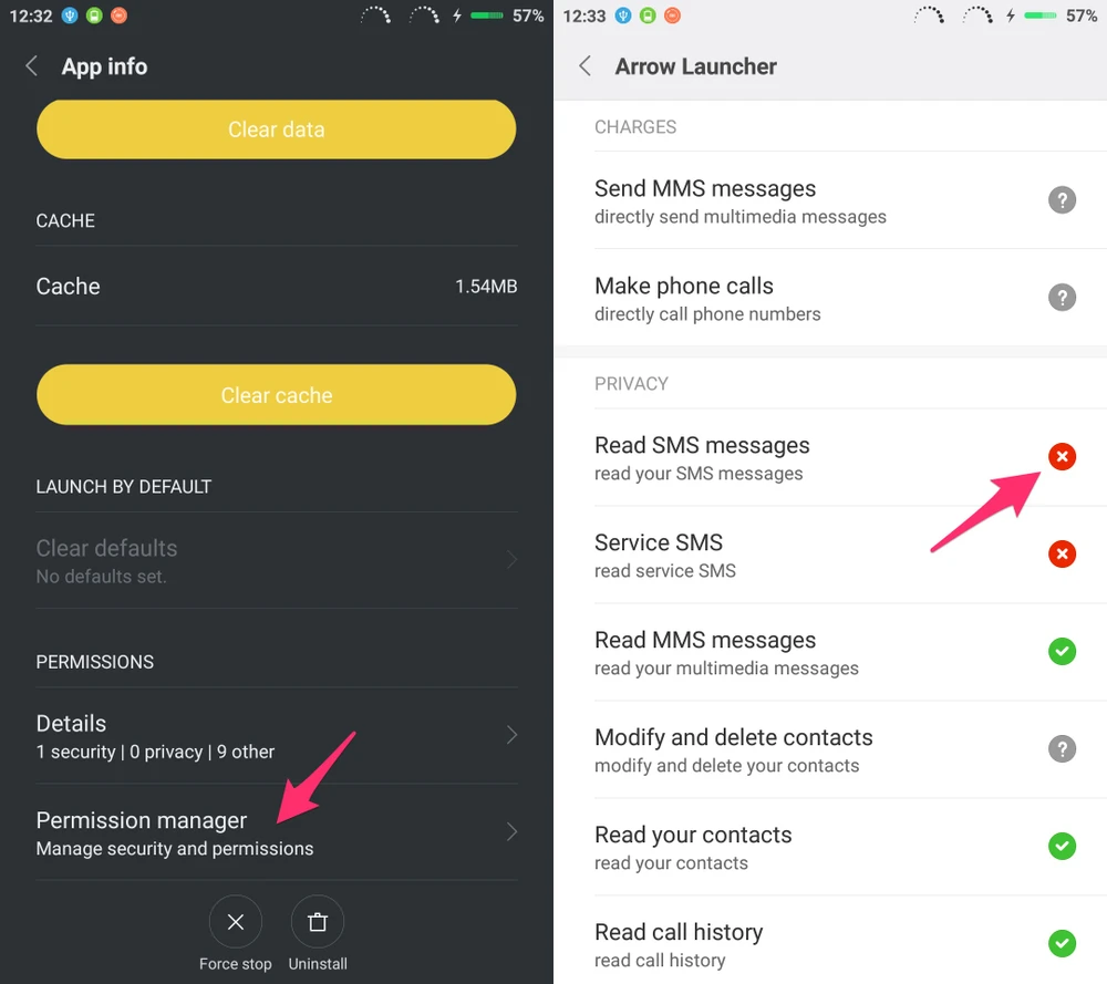- Android: Đầu tiên, bạn hãy truy cập vào Settings (cài đặt) > Apps (ứng dụng) > Permission manager (quản lý quyền hạn), chọn các ứng dụng không cần thiết và lấy lại quyền hạn đã cấp bằng cách chọn Deny (cấm) hoặc Notify (luôn hỏi khi cần sử dụng). Lưu ý, tên và vị trí các tùy chọn có thể thay đổi tùy thuộc vào dòng smartphone bạn đang sử dụng.