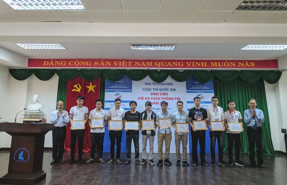 Sau 8 giờ thi đấu căng thẳng, vòng Chung khảo Cuộc thi Sinh viên với ATTT 2018 đã kết thúc với ngôi vị cao nhất thuộc về đội z3r0_n1ght của Trường Đại học FPT. Giải nhất có trị giá 15 triệu đồng.