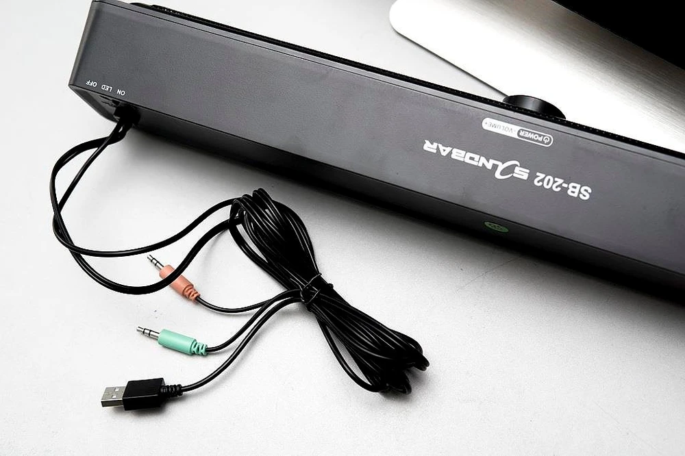 Như muốn mang lại sự đơn giản tối đa cho người dùng, SB-202 chỉ dùng một ngõ USB-A để lấy nguồn điện 5V từ máy tính “nuôi” loa. Nguồn vào âm thanh của SoundMax SB-202 là ngõ 3,5 mm truyền thống và sản phẩm cũng được trang bị kèm một ngõ micro vào song song với ngõ vào tín hiệu âm thanh này.