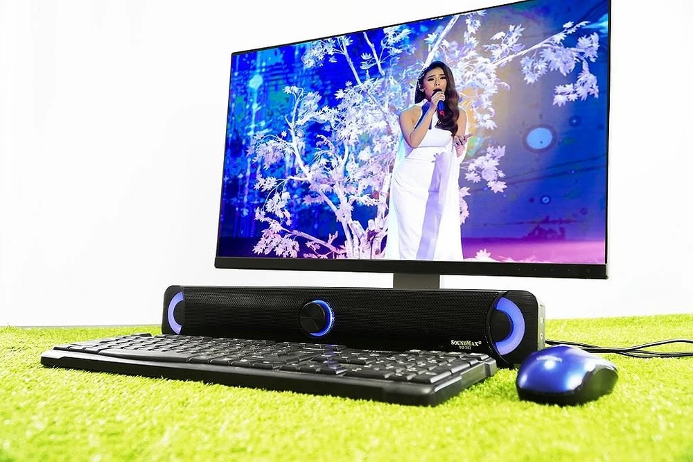Mẫu loa soundbar SB-202 dài 477mm của SoundMax hoàn toàn vừa vặn so với những mẫu máy tính AIO có kích thước màn hình lớn, cỡ 23 inch cũng như những mẫu màn hình máy tính kích thước từ 20 inch trở lên. Thử đặt trực tiếp SoundMax SB-202 dưới mẫu máy tính AIO Asus Zen AIO Pro, chiều cao của mẫu loa soundbar này cũng rất phù hợp với “độ sáng gầm” của máy.