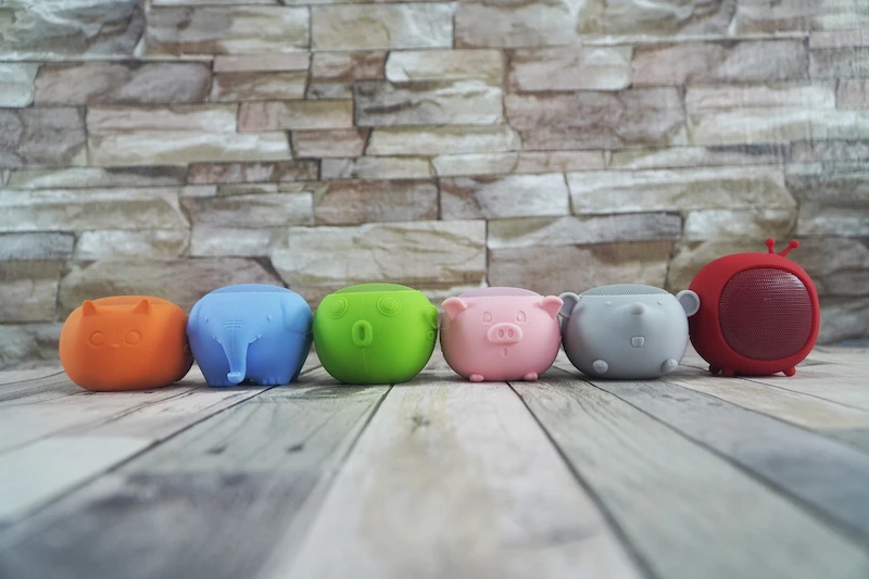 Trọn bộ sưu tập ngoại trừ chiếc tivi với tông màu đỏ có thiết kế màng loa hướng ra trước, còn lại những phiên bản thú cưng đều có màng loa hướng lên trên.