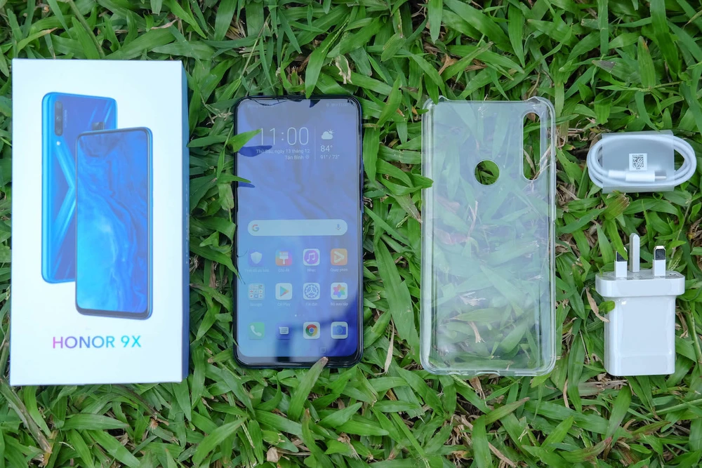 Về ngoại hình, Honor 9X có kiểu dáng bo tròn ở bốn góc cho cảm giác cầm nắm dễ dàng. Máy có màn hình tràn viền 6,59 inch, không tai thỏ, mang đến trải nghiệm nghe nhìn sướng hơn. Phần camera selfie đã được đặt bên dưới màn hình và hoạt động theo cơ chế "thò thụt" nhằm tăng diện tích hiển thị.