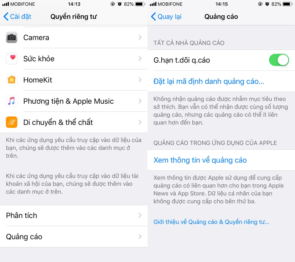 Để tránh bị thu thập vị trí, bạn hãy truy cập vào mục Settings (cài đặt) > Privacy (quyền riêng tư) > Advertising (quảng cáo) và kích hoạt tùy chọn Limit Ad Tracking (giới hạn theo dõi quảng cáo), nhấn Don’t allow (không cho phép) nếu xuất hiện hộp thoại nhắc nhở.