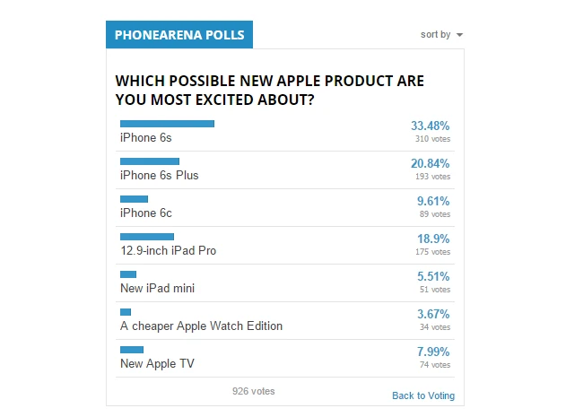 Với tổng cộng 928 lượt bình chọn tại thời điểm viết bài, chúng ta sẽ có cái nhìn khách quan nhất về “sở thích” cũng như xu hướng của giới công nghệ trước buổi ra mắt của Apple. Và với 310 lượt vote, không ngạc nhiên khi chiếc iPhone 6s là thiết bị được mong chờ nhất, vượt qua hầu hết những “đối thủ” khác như iPhone 6s Plus, iPad Pro, thậm chí là Apple TV!