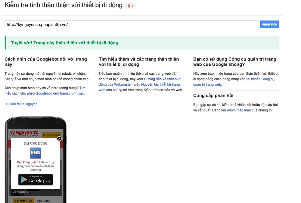 Để kiểm tra tính thân thiện của website, người dùng có thể truy cập vào liên kếthttps://www.google.com/webmasters/tools/mobile-friendly/, sau đó nhập địa chỉ trang web của mình vào khung rồi nhấn nút Phân tích.