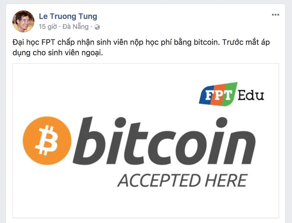 Chia sẻ trên báo chí, Tiến sĩ Lê Trường Tùng cho biết trước mắt việc này sẽ chỉ áp dụng đối với các sinh viên ngoại quốc, và khuyến khích sinh viên VN tham gia. Nhiều người cho rằng việc thu phí bằng bitcoin không khả thi vì giá của đồng tiền ảo thường trồi sụt thất thường, tuy nhiên, Tiến sĩ cho biết trước đây vẫn thu phí sinh viên ngoại quốc bằng ngoại tệ, do đó rủi ro giữa hai việc này là như nhau.