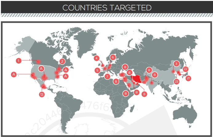Bản đồ các nước bị tấn công trong chiến dịch Operation Cleaver