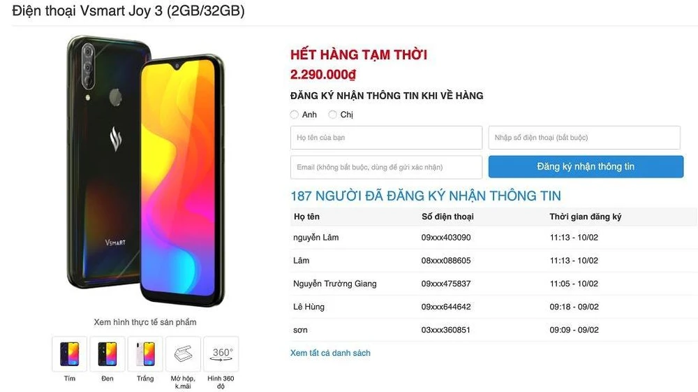 Vsmart Joy 3 cháy hàng tại nhiều đại lý. Ảnh: TIỂU MINH