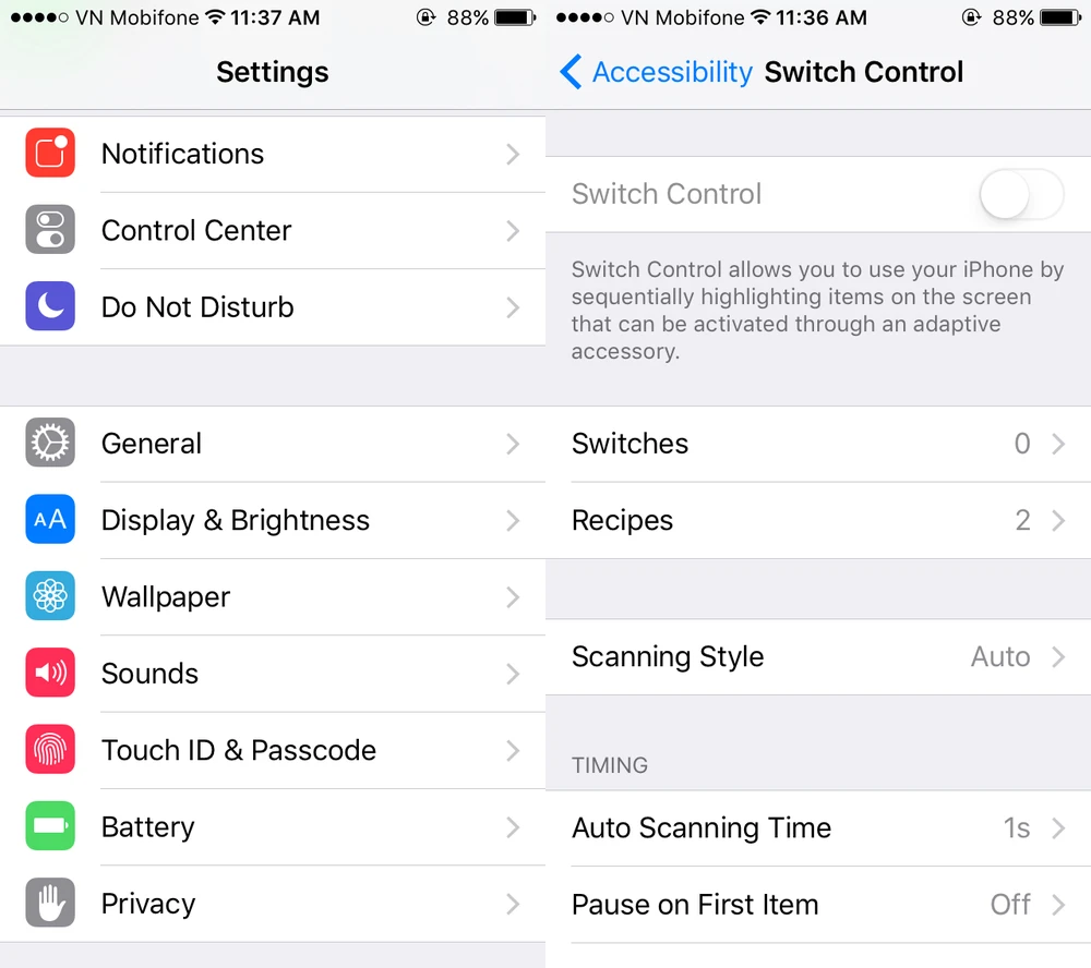 Kích hoạt tính năng Switch Control. Ảnh: MH