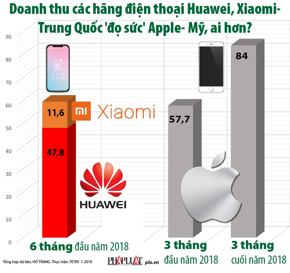 Doanh thu điện thoại Huawei, Xiaomi- Trung Quốc 'đọ' Apple- Mỹ