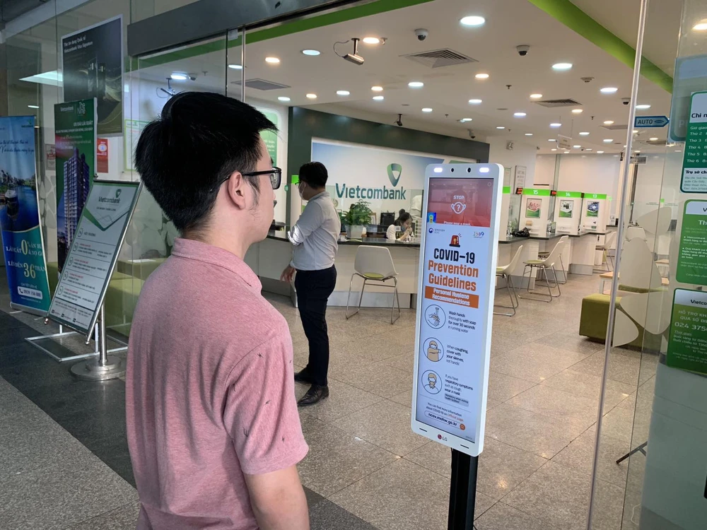 Thiết bị đo thân nhiệt tự động giúp hạn chế những tiếp xúc vật lý. Ảnh: TH