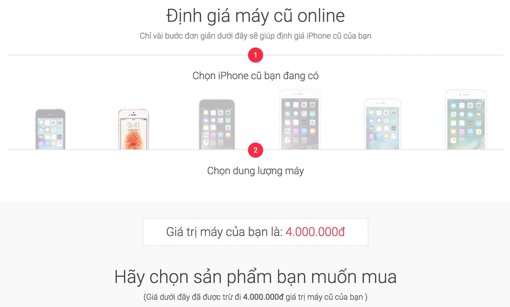 Máy sẽ được định giá theo khung giá có sẵn. Sau đó, nhân viên thông báo ngay số tiền chênh lệch để nâng cấp lên iPhone 7/ 7 Plus hoặc một số dòng iPhone khác nằm trong chương trình.