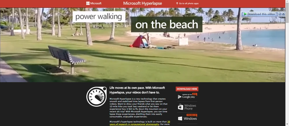 Quay lại chủ đề của bài viết, Microsoft thật ra đã từng đưa ra phiên bản cho iOS nhằm giúp các thiết bị “nhà Táo” có thể thực hiện nhưng đoạn timelapse phức tạp mà không hề có sự rung lắc trong video thành phẩm. Trước đây việc này là không thể nếu không có sự trợ giúp cúc những thiết bị phức tạp. Đến bây giờ thì ông lớn mới chịu phát hành phiên bản dành cho Android và Windows Phone, nhưng chỉ giới hạn cho một số thiết bị, vì đây thực chất cũng chỉ là một phiên bản thử nghiệm mà thôi.