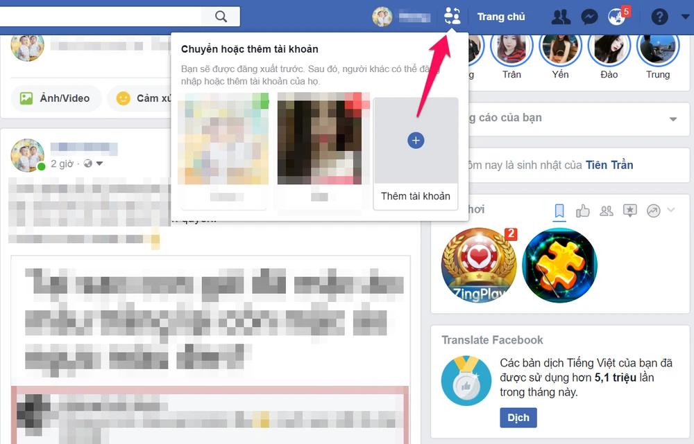 Lúc này, người dùng có thể thêm vào các tài khoản Facebook thường dùng để tiện quản lý và chuyển đổi qua lại.