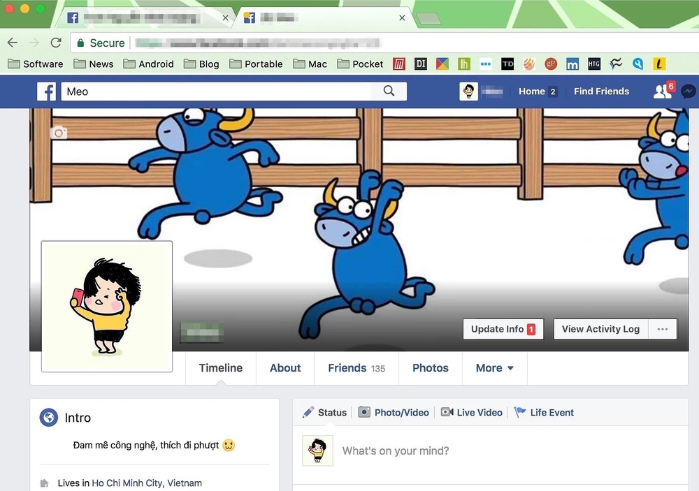 Tài khoản Facebook mở thêm sẽ có biểu tượng màu vàng trên Tab (thẻ). Ảnh: MINH HOÀNG