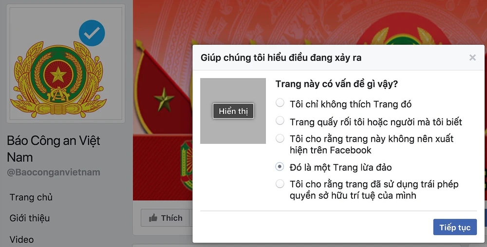 Đối với fanpage chia sẻ các tin tức giả mạo, bạn hãy bấm vào biểu tượng "..." ở góc phải ảnh bìa và chọn Report page (báo cáo trang) > It's a scam (đó là một trang lừa đảo) > Hide all posts from... (ẩn tất cả bài viết từ...).