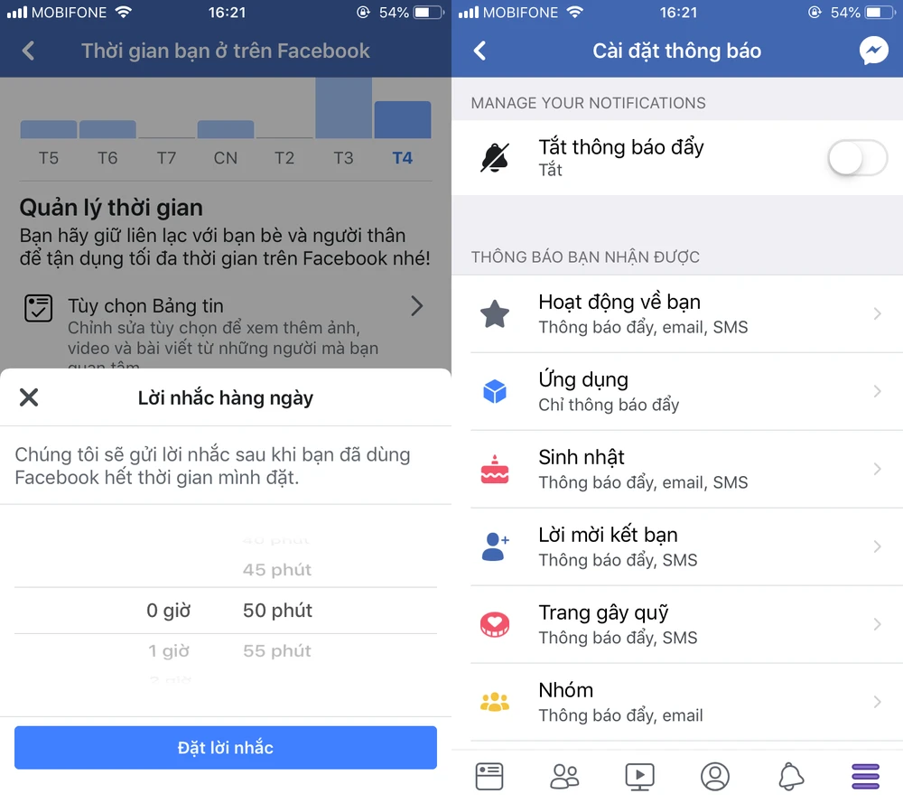 Ngoài ra, bạn còn có thể thiết lập nhắc nhở khi đã sử dụng Facebook quá thời gian cho phép.