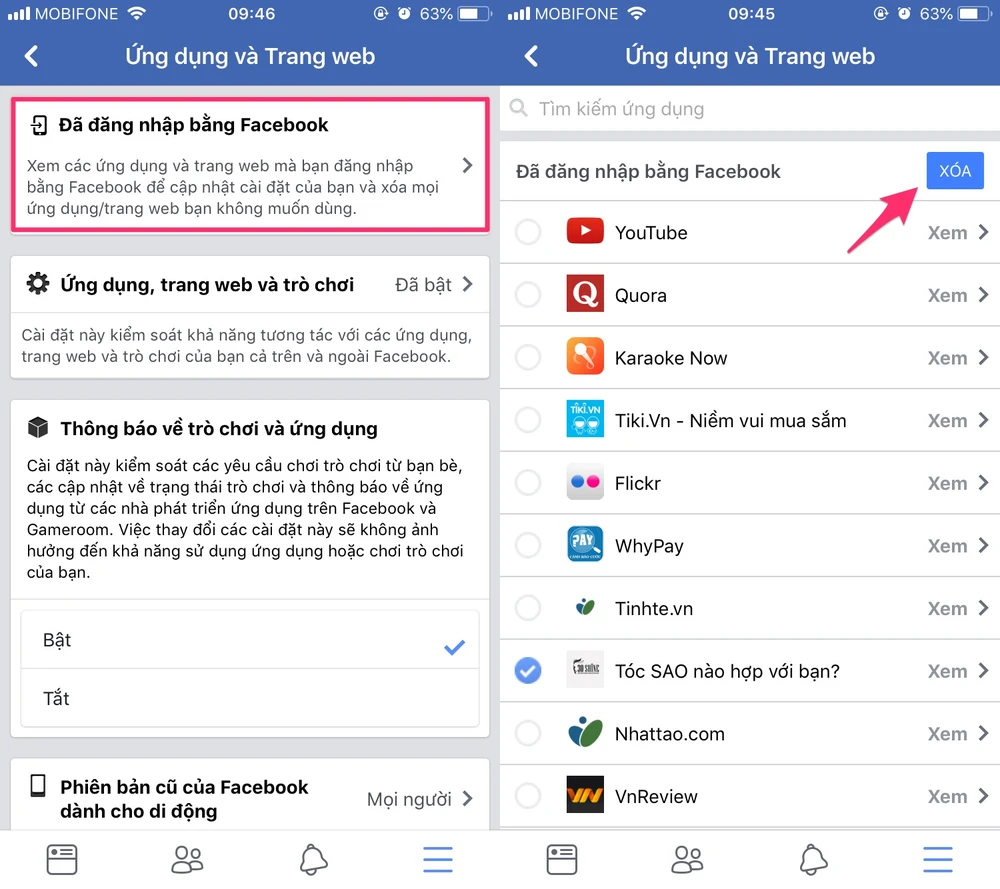 Tương tự, người dùng cũng nên chủ động xóa các ứng dụng, trang web đã đăng nhập bằng tài khoản Facebook trước đó.