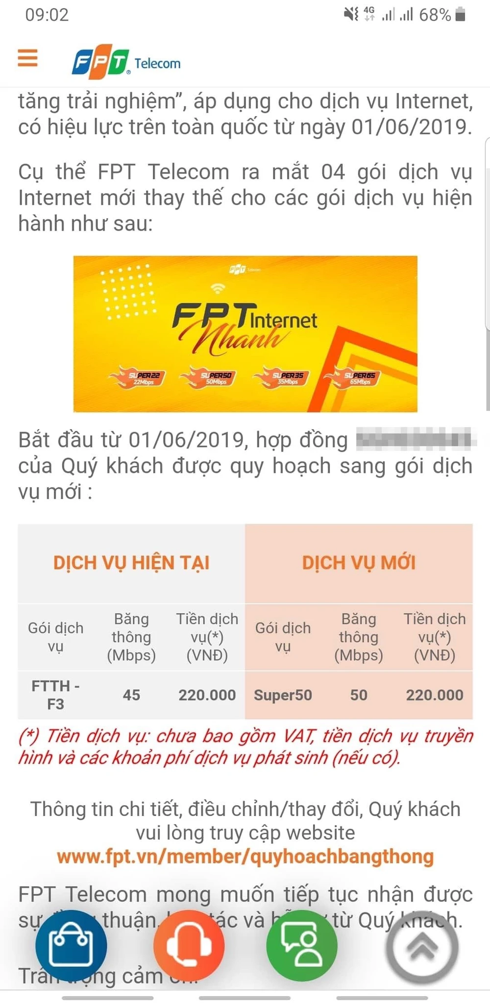 Cụ thể, dù sử dụng cùng một gói F3 (45 Mbps) nhưng người này lại được chuyển sang gói Super 65 (65 Mbps), còn người kia chỉ được nâng cấp thành gói Super 50 (50 Mbps). Thêm vào đó, số tiền phải trả của từng người cũng khác nhau.