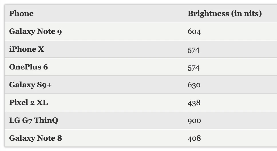 Note 9 sử dụng màn hình Super AMOLED 6,4 inch với độ phân giải HD quad và nó rất sáng. Thiết bị đạt 604 nits, sáng hơn OnePlus và iPhone X với 574 nits, nhưng vẫn thua Galaxy S9 Plus (630 nits) và LG G7 ThinQ (900 nits).