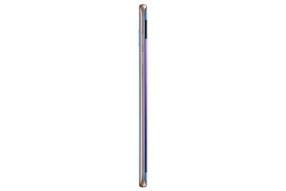Galaxy S7 Edge Blue Coral vẫn giữ nguyên thiết kế bo cong hai cạnh, mặt lưng màu xanh san hô và khung viền kim loại sáng bóng.