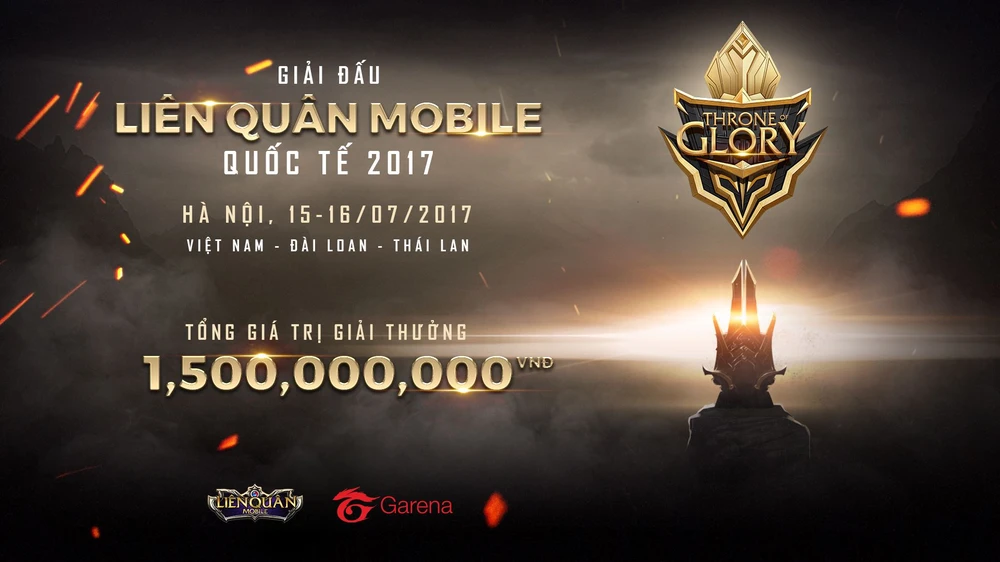Để nâng tầm hệ thống giải đấu Liên Quân Mobile, cũng như tạo điều kiện cọ xát giữa các cường quốc trong khu vực, Garena chính thức công bố giải đấu quốc tế Garena Throne of Glory 2017.