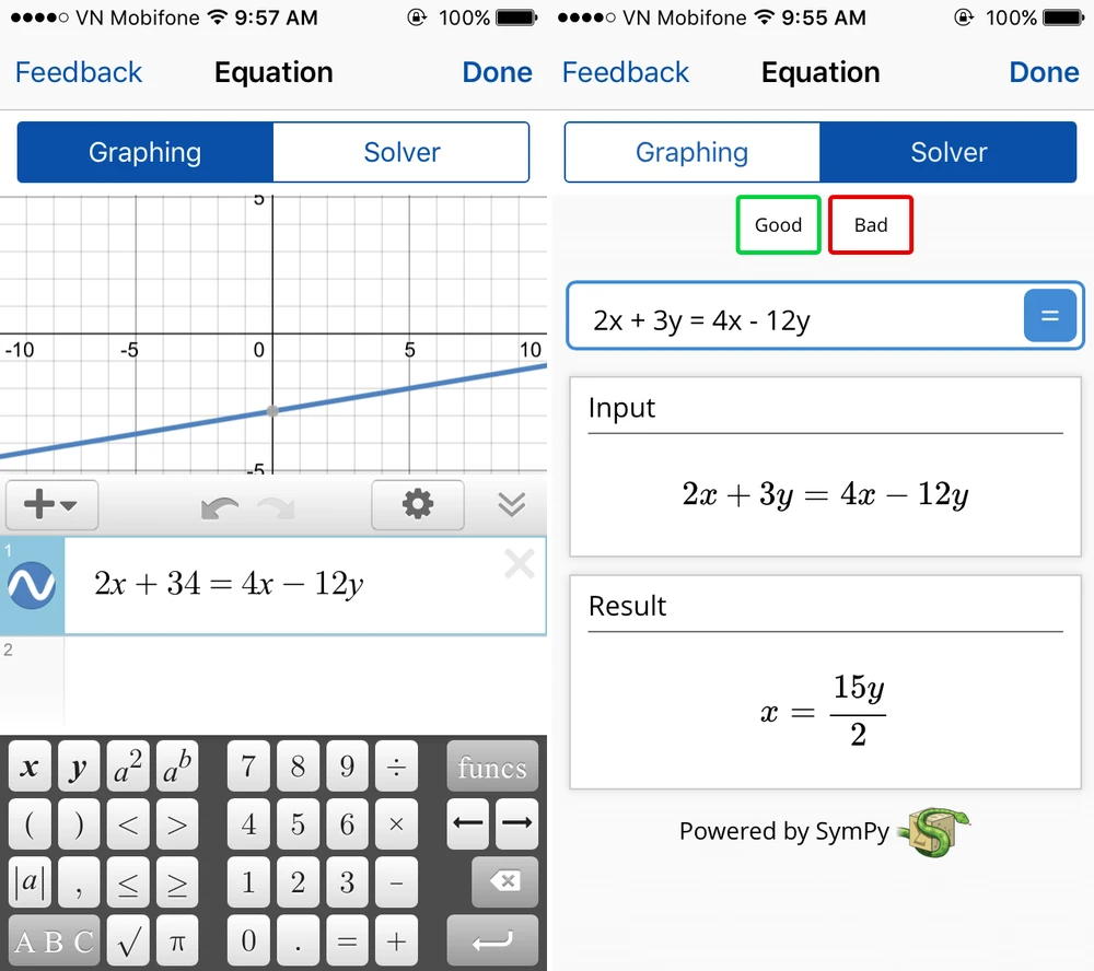 - Bước 3: Tại đây sẽ có hai phần là Graphing (bài toán được diễn đạt dưới dạng đồ thị) và Solver (kết quả cuối cùng). Nếu chương trình nhận diện sai các con số hoặc ký tự, bạn có thể sửa lại dễ dàng.