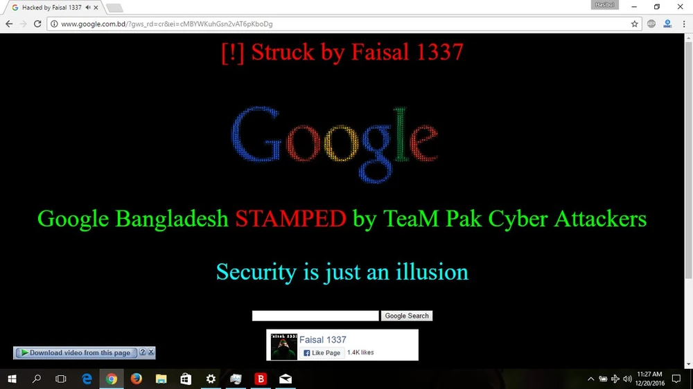 Khi truy cập vào địa chỉ google.com.bd, bạn sẽ thấy xuất hiện màn hình màu đen với nội dung “Struck by Faisal 1337”. Cụ thể, tin tặc đã tìm ra cách tấn công DNS thông qua BTCL (Công ty TNHH viễn thông lớn nhất Bangladesh).