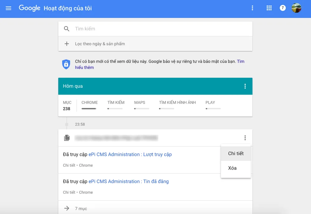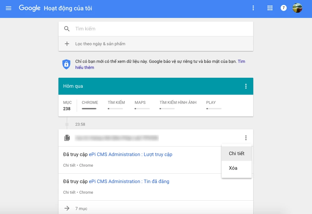 Đầu tiên, bạn hãy truy cập vào https://myactivity.google.com/myactivity, tại đây sẽ bao gồm các thông tin mà bạn đã tìm kiếm, các trang vừa truy cập hay những hoạt động đã thực hiện trên trang… Để xem đầy đủ thông tin hơn, bạn chỉ cần chạm vào biểu tượng ba chấm và chọn Chi tiết hoặc Xóa.