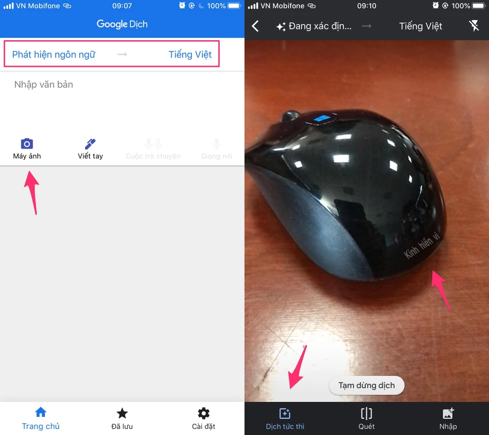 Tính năng Dịch tức thời hiện tại đã hỗ trợ tiếng Việt. Ảnh: MINH HOÀNG