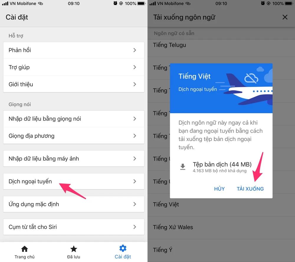 Nếu muốn dịch văn bản ngay cả khi không có Internet, 3/4G, bạn hãy truy cập vào phần Cài đặt > Dịch ngoại tuyến, bấm vào biểu tượng dấu +, chọn ngôn ngữ cần sử dụng và tải về.