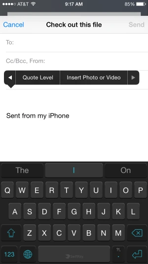 - Trong phần thân email, nhấp và giữ trên màn hình, vị trí mà bạn muốn đính kèm file.