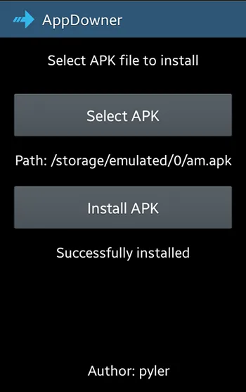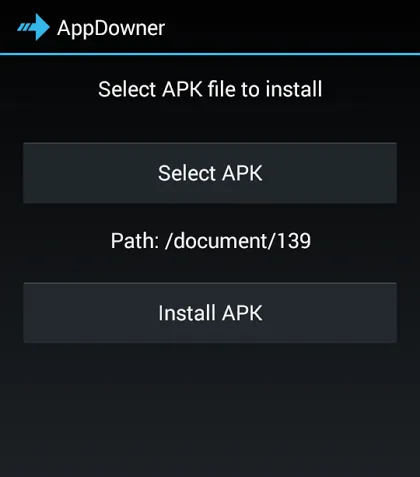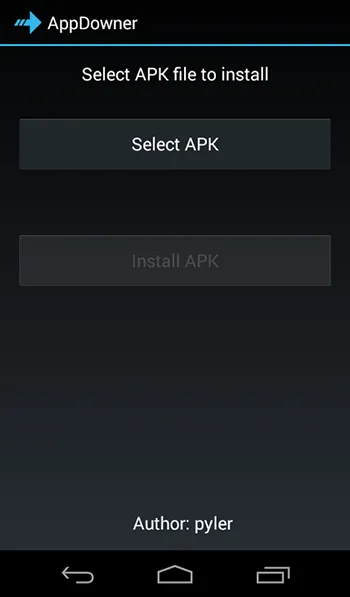 Bạn có thể tải về App Downer tại http://goo.gl/KHfhF3. Để sử dụng được ứng dụng này thì thiết bị phải được root và chạy Android 4.0 trở lên. Trước khi cài đặt ứng dụng, hãy chắc chắn đã kích hoạt tùy chọn install apps from unknown sources (cài đặt ứng dụng từ nguồn không xác định) trên thiết bị. Nếu không, hãy vào Settings -> Security -> Device Administration -> Unknown Sources. Kích hoạt tùy chọn này và cài đặt tập tin APK vừa tải về. Một khi hoàn tất cài đặt, bạn sẽ thấy một cửa sổ như hình trên. Nó chỉ có hai lựa chọn, Select APK và Install APK.