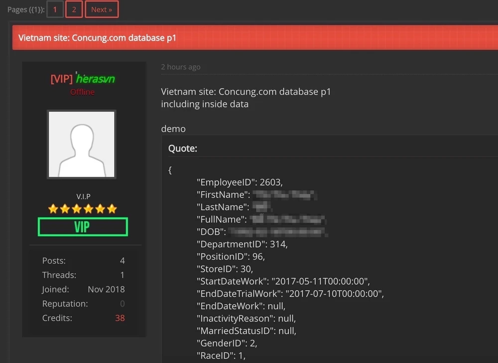 Cụ thể, herasvn cho biết sẽ tiếp tục chia sẻ cơ sở dữ liệu của chuỗi cửa hàng đồ dùng trẻ em trên (khách hàng và nhân viên công ty) trong những ngày sắp tới. Dựa vào các thông tin đăng tải, dữ liệu này gồm có họ tên, số điện thoại, chứng minh nhân dân (ngày và nơi đăng ký), vị trí làm việc, email... và chức vụ của các thành viên trong ban quản trị. Hiện tại vẫn chưa rõ tính xác thực của thông tin.