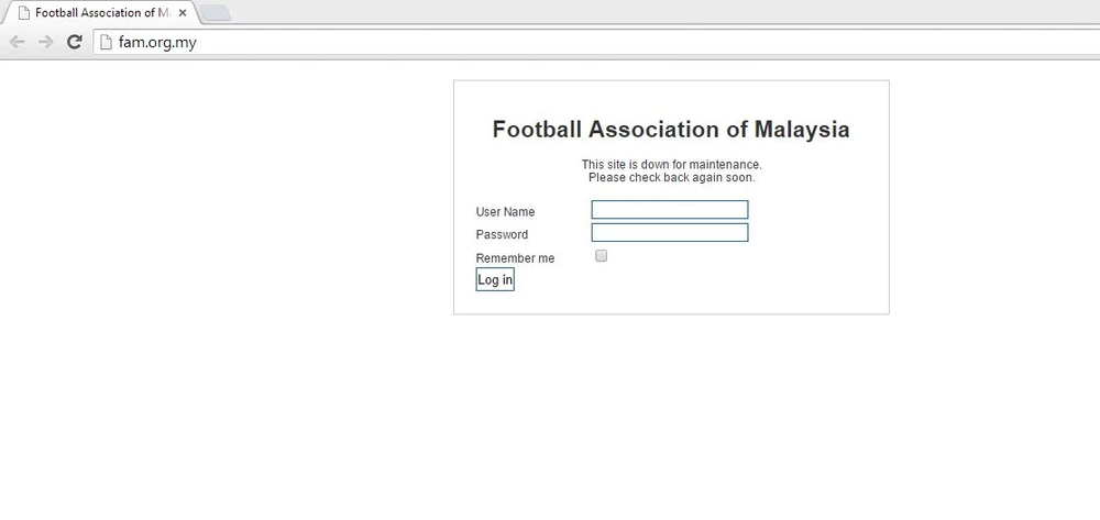 Hình ảnh sau khi bị tấn công với thông báo website đang bảo trì của LĐBĐ Malaaysia