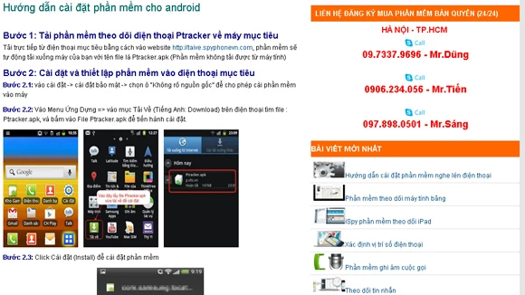 Ngày 13-5-2014, đoàn thanh tra liên ngành tiến hành thanh tra tại Công ty TNHH Công nghệ Việt Hồng (sau đây gọi là Công ty Việt Hồng), địa chỉ tại tầng 4, toà nhà 110 Tô Vĩnh Diện, Khương Trung, Thanh Xuân, Hà Nội. Công ty này hoạt động có giấy phép đăng ký kinh doanh do Sở KH-ĐT Hà Nội cấp ngày 2-6-2010. Qua quá trình kiểm tra, đoàn thanh tra đã phát hiện Công ty Việt Hồng có kinh doanh phần mềm ptracker. Người sử dụng ptracker có thể xem tin nhắn, danh bạ, ghi âm cuộc thoại, ghi âm môi trường xung quanh, định vị vị trí điện thoại, quay phim, chụp ảnh, bật (tắt) 3G/GPRS của điện thoại bị giám sát. Ngoài ra, người sử dụng còn có thể ra lệnh điều khiển từ xa điện thoại bị cài ptracker bằng tin nhắn tới điện thoại này.