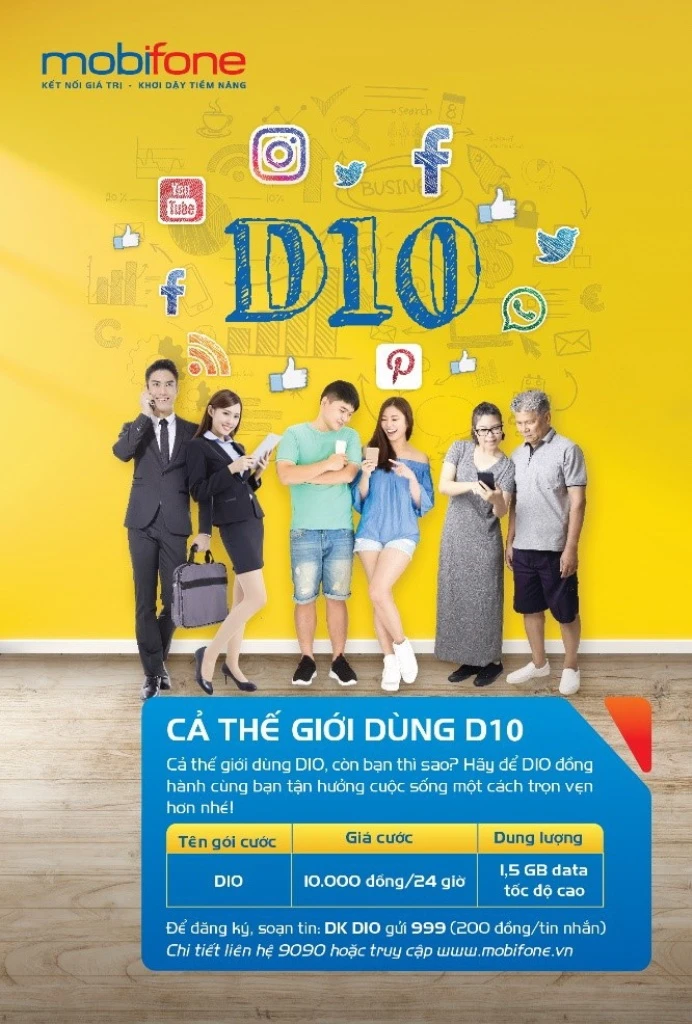 Nắm bắt được nhu cầu của các khách hàng luôn luôn phải có kết nối internet nhưng nhu cầu sử dụng 3G/4G lại không liên tục, Mobifone cung cấp gói cước data theo ngày D10. Gói cước ngày càng nhận được sự ưa chuộng của khách hàng, đặc biệt là các khách hàng trẻ vì sự tiện lợi, dụng lượng lớn, chi phí lại rẻ.