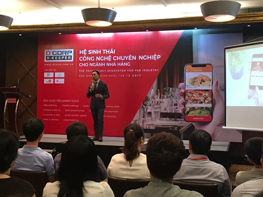 Trong buổi giới thiệu "Hệ sinh thái công nghệ chuyên nghiệp cho ngành nhà hàng", Dcorp R-Keeper giới thiệu các tính năng tiên tiến nhất nằm trong hệ sinh thái công nghệ mà công ty đang phát triển và cùng kết nối với các đối tác phát triển khác để cung cấp cho thị trường trong thời gian tới như gọi món trên mọi thiết bị (máy tính bảng, di động, website, quét mã QR-code hay ứng dụng Facebook messenger - chatbot).