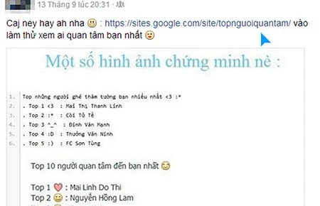 Các ứng dụng dạng này thường được đặt tên rất hấp dẫn, đánh trúng vào tâm lý tò mò của mỗi người. Nhưng thực tế chúng lôi kéo người dùng vào một nhóm nào đó hoặc chuyển hướng đến một trang đăng nhập Facebook giả mạo nhằm chiếm đoạt tài khoản.