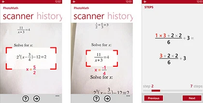 Bên cạnh đó, nó còn cho phép bạn kiểm tra lại các phương trình được giải bằng PhotoMath theo từng bước để hiểu rõ hơn quá trình giải quyết vấn đề. Thông thường thì chúng ta không thể sử dụng điện thoại trong giờ kiểm tra, tuy nhiên ứng dụng này có thể sẽ hữu ích đối với những bài tập về nhà của bạn. Cần lưu ý rằng đây chỉ là công cụ giúp bạn học toán nhanh hơn, do đó không nên lạm dụng quá mức dẫn đến việc bị hổng kiến thức và mất điểm trong các kì kiểm tra.